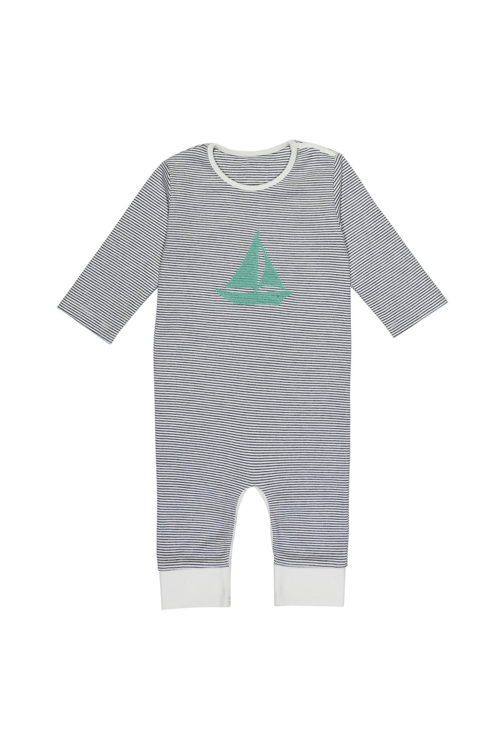 Grösse 68 * blau gestreifter Anzug mit gestickten Segelboot (D)