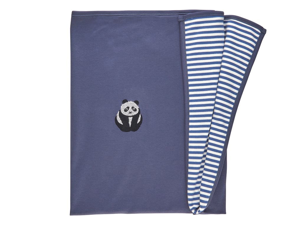 gestreifte, sehr weiche Decke mit gesticktem Pandabär