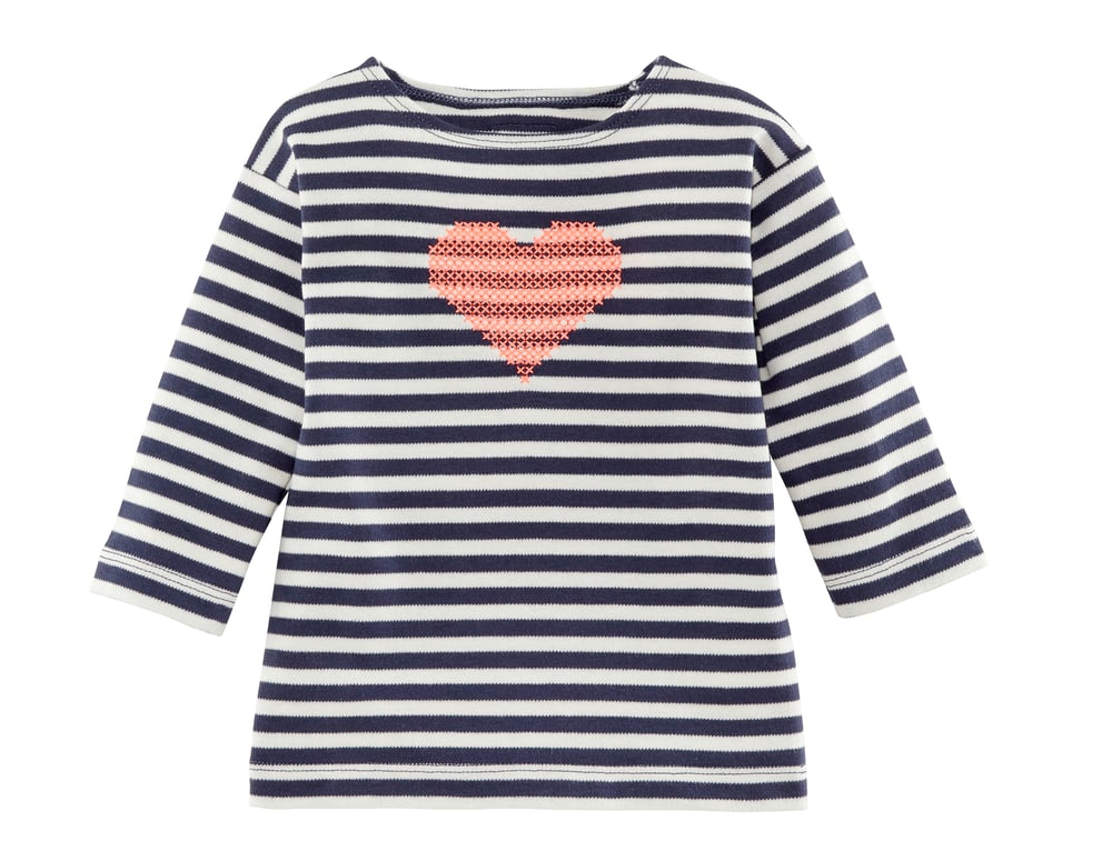blau gestreiftes T-Shirt mit einem gestickten Herzen