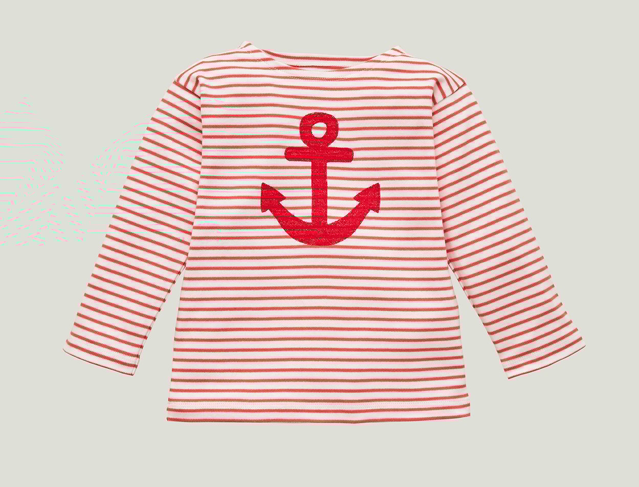 rot gestreiftes T-Shirt mit einem gestickten Anker