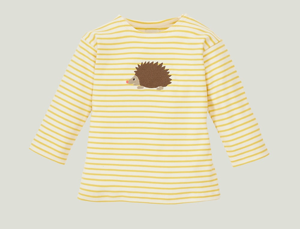 gelb gestreiftes T-Shirt mit einem gestickten Igel