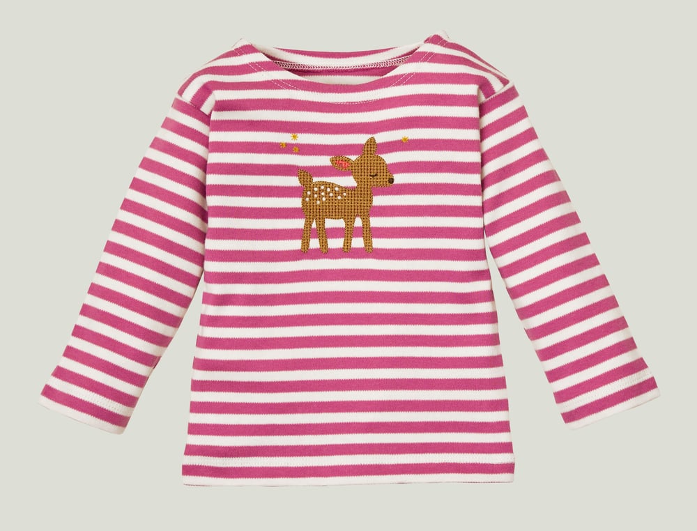 beerenrot gestreiftes T-Shirt mit einem gestickten Reh