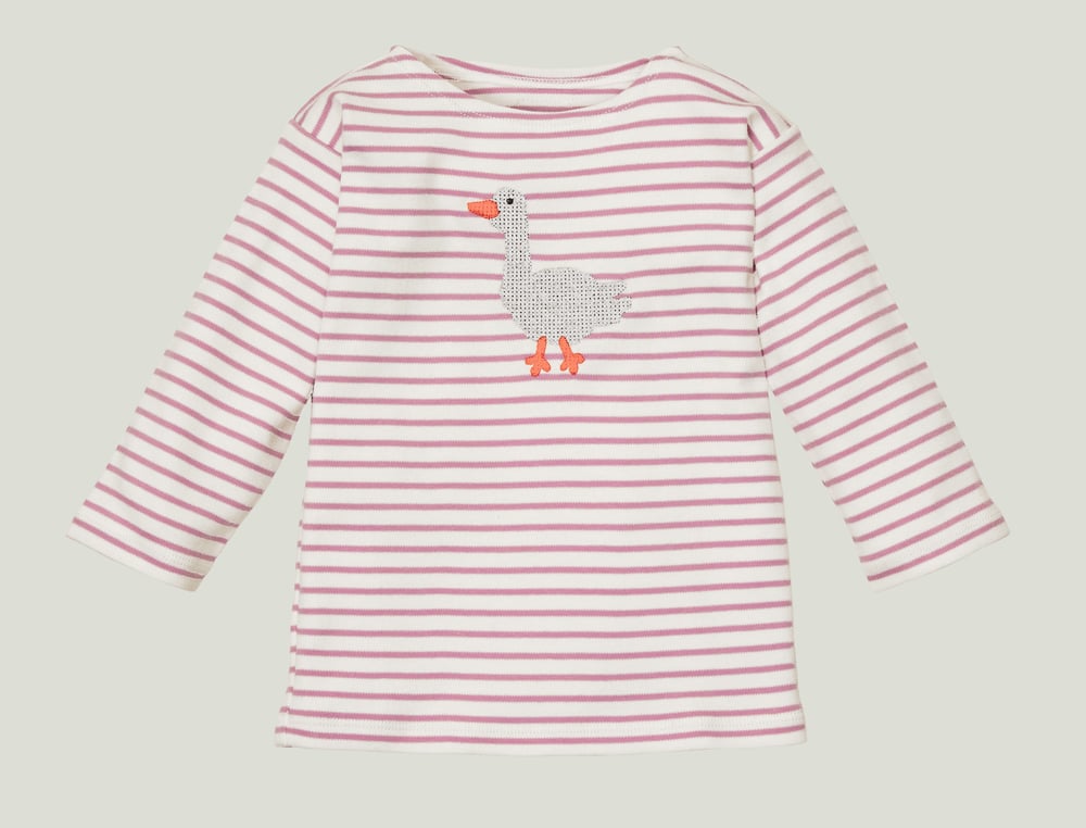 Flieder gestreiftes T-Shirt mit einer gestickten Gans