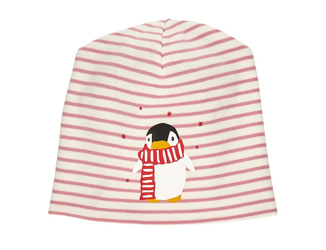 Altrose gestreifte Mütze mit gedrucktem Pinguin