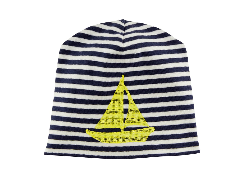 blau gestreifte Mütze mit gelber Segelboot-Stickerei Art.815510 (E)