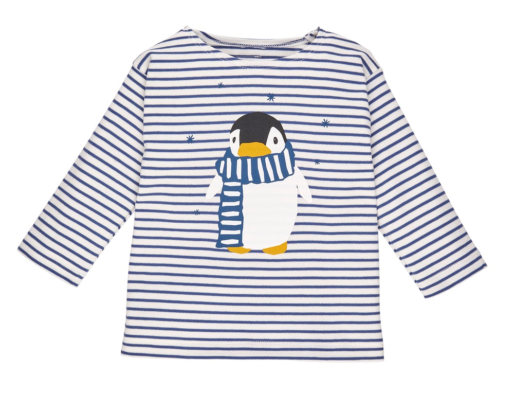 Blau gestreiftes Shirt mit einem gedruckten Pinguin