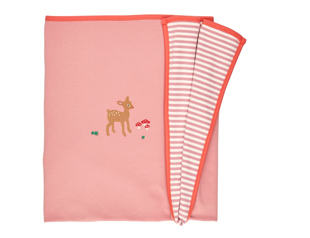 gestreifte, sehr weiche Decke mit gesticktem Reh