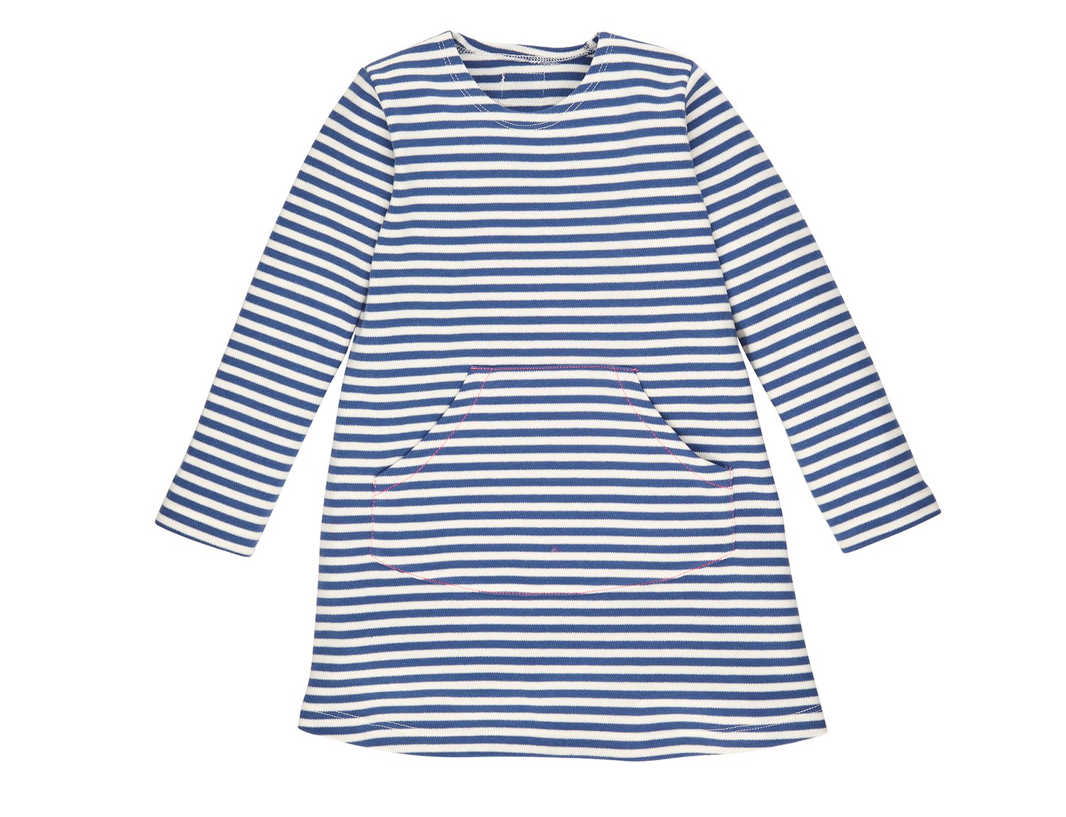 dunkelblau getreiftes T-Shirt-Kleid mit grosser Tasche