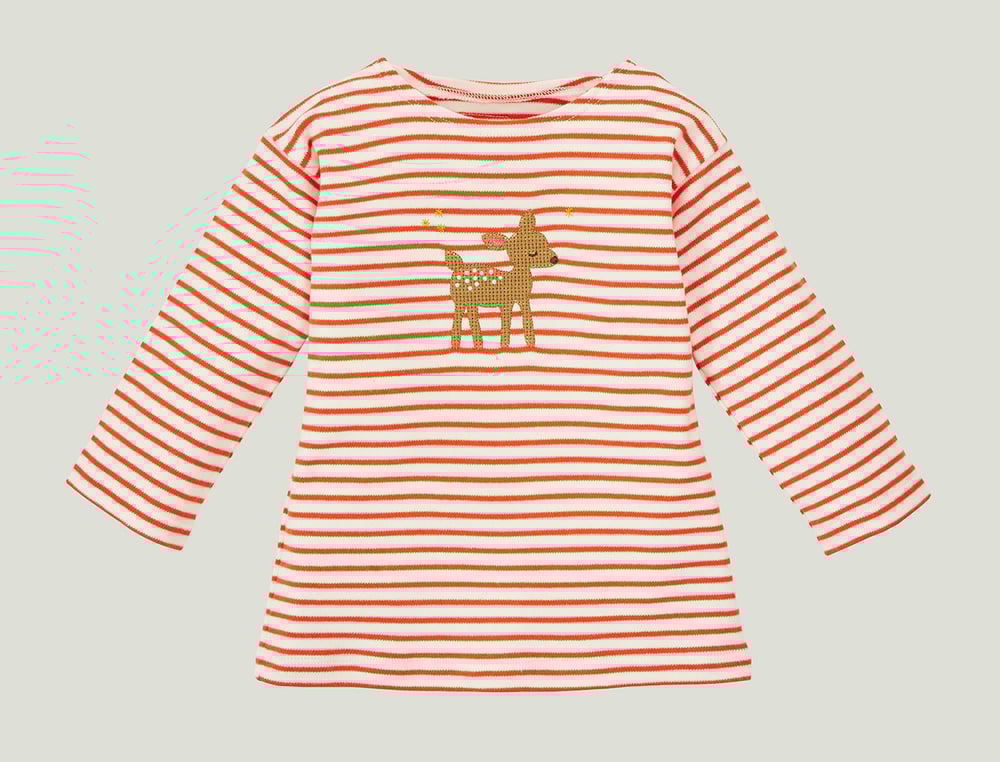 rot gestreiftes T-Shirt mit einem gestickten Reh